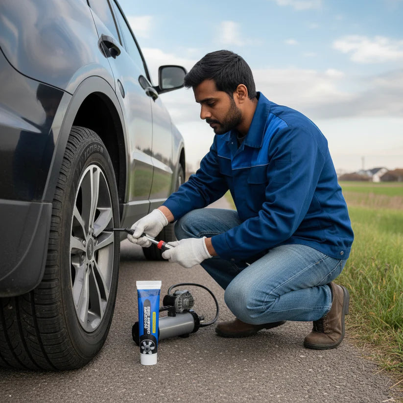 A flat tyre can waste your day and empty your wallet. Take control with Waterproof Flexible Tyre Repair Adhesive. It instantly fixes small cuts, cracks, and punctures. You get a professional, strong repair without high repair shop fees and NO special tools needed. Just apply, wait, and drive!